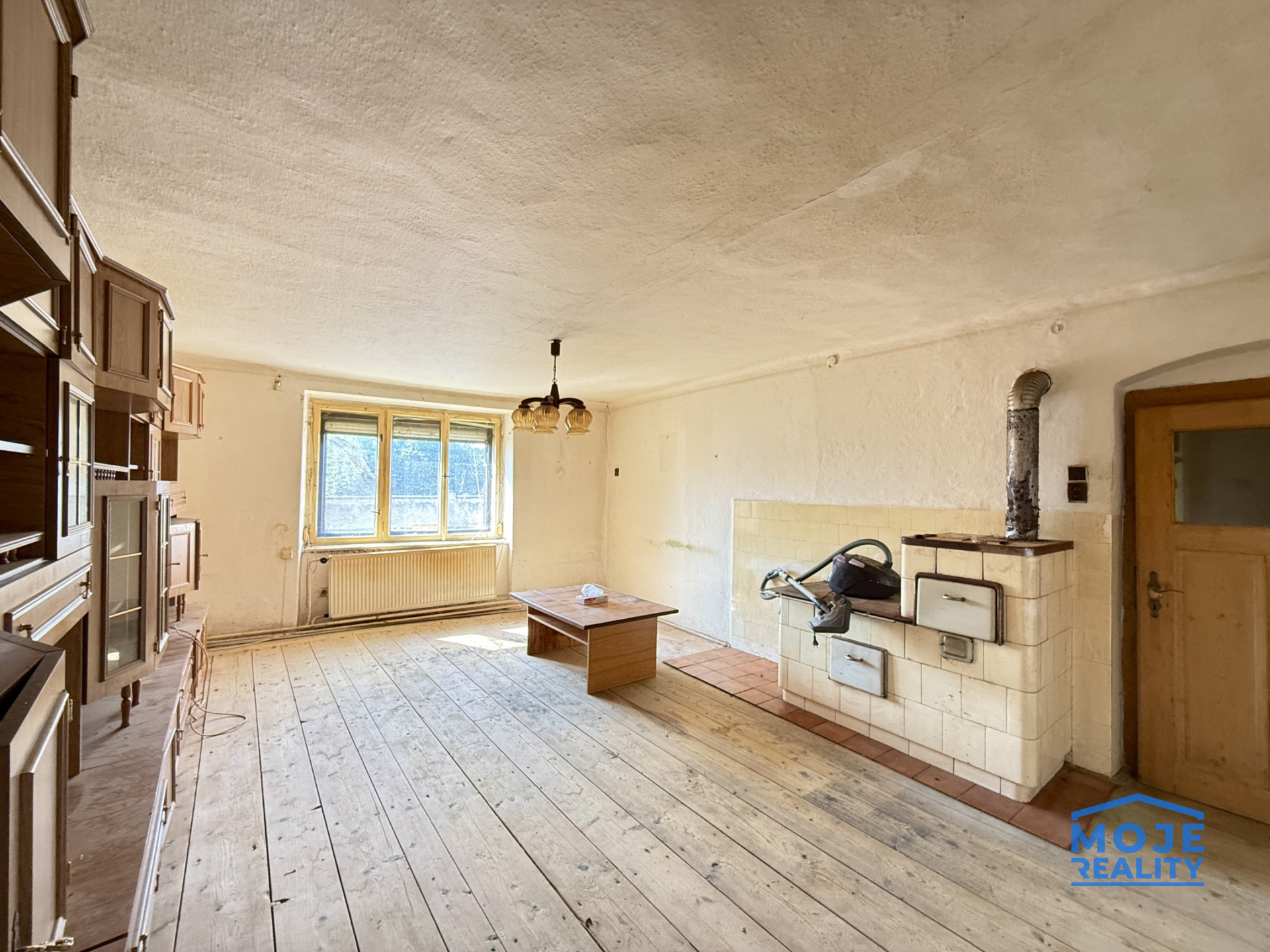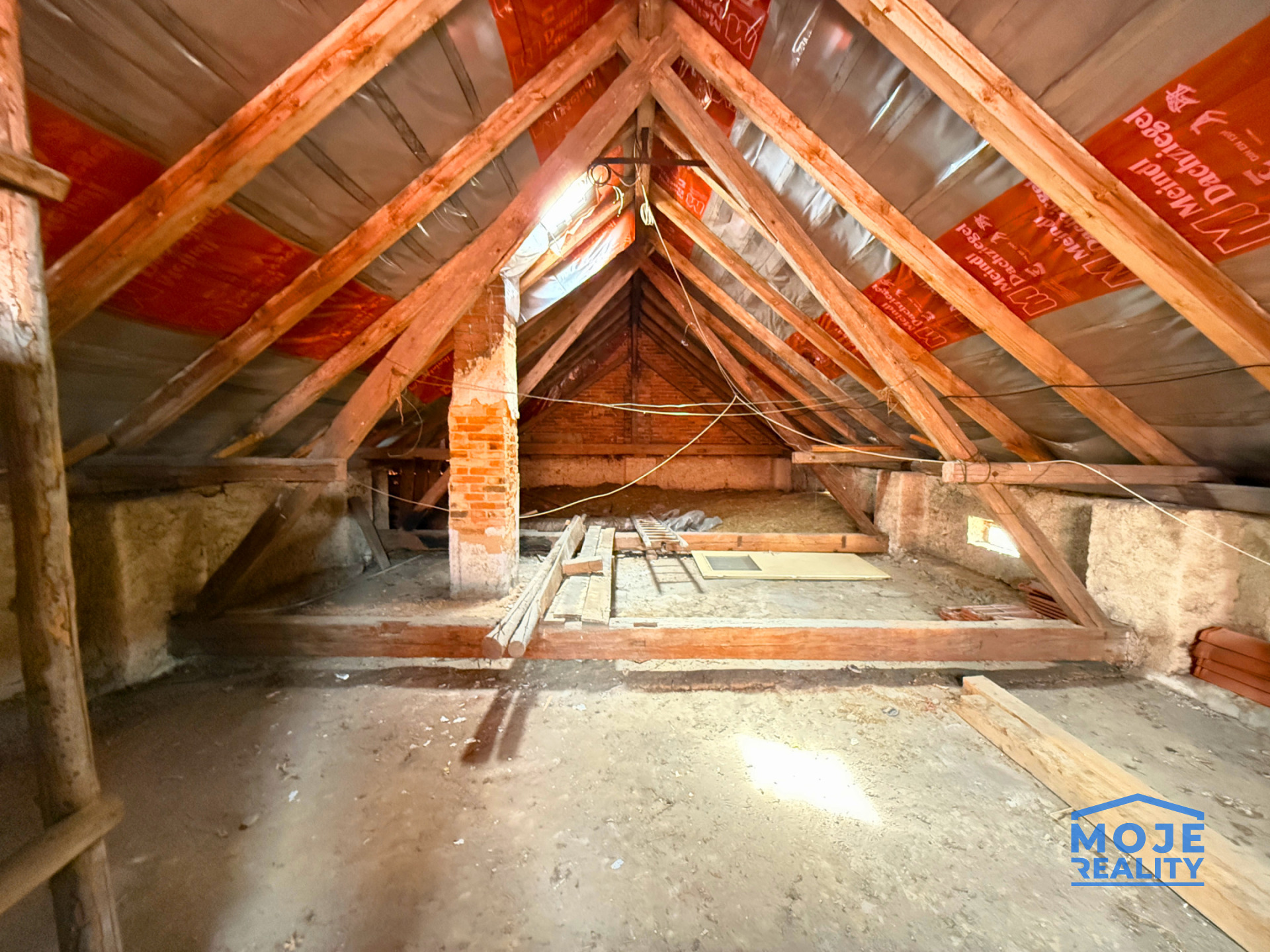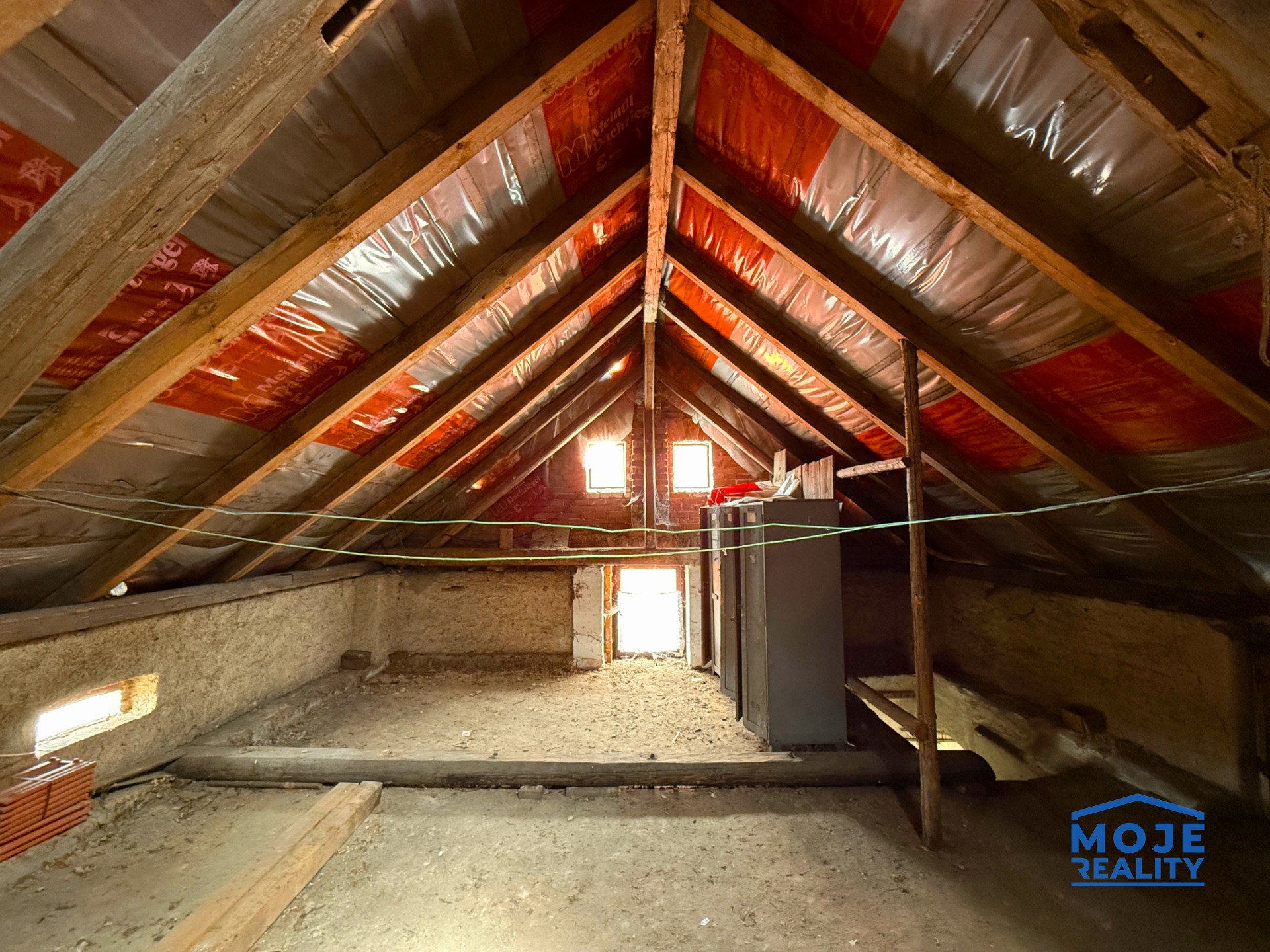 Obytná část se nachází v přízemí. Z prostorné chodby vede dřevěné schodiště do podkroví, kde je možné vybudovat další obytné místnosti. Střecha včetně krovu byla kompletně renovována před 14 lety, takže v případě vestavby podkroví nebude nutná další investice mimo zateplení. Podkrovní prostor navazuje na hospodářskou a technickou část domu, můžete tedy rozšířit obytné plochy v půdorysu do tvaru L.