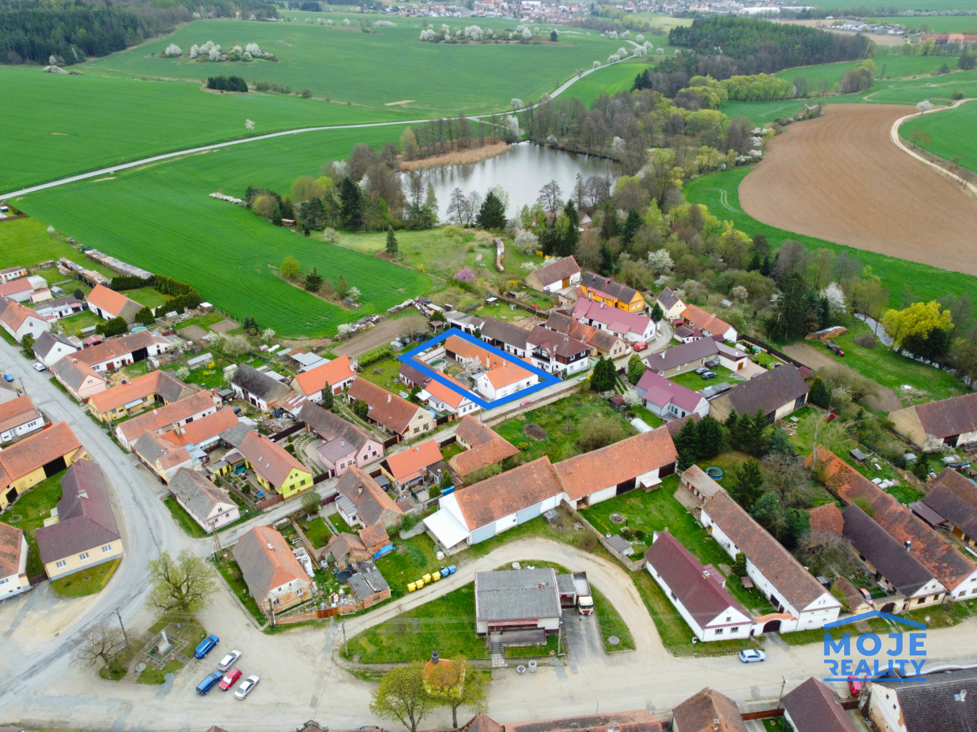 Prodej rodinného domu s uzavřeným nádvořím a hospodářským zázemím v klidné obci Zemětice. V katastrálním území Zemětice, okres Plzeň-jih, Plzeňský kraj.