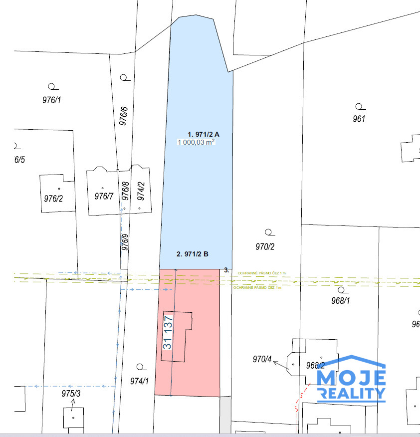 Nabízíme stavební pozemek o výměře 1000 m² určený pro výstavbu rodinného domu o zastavěné ploše až 100 m².