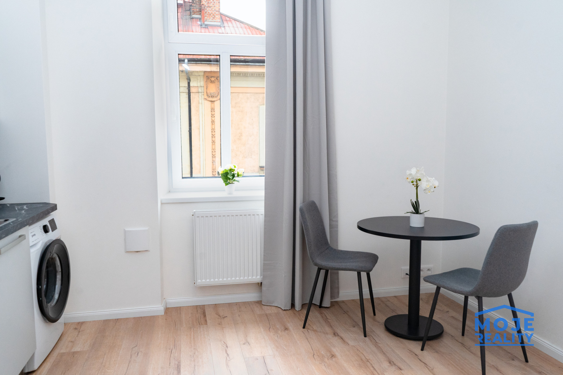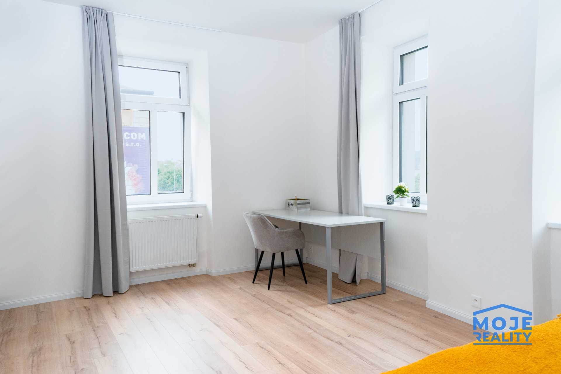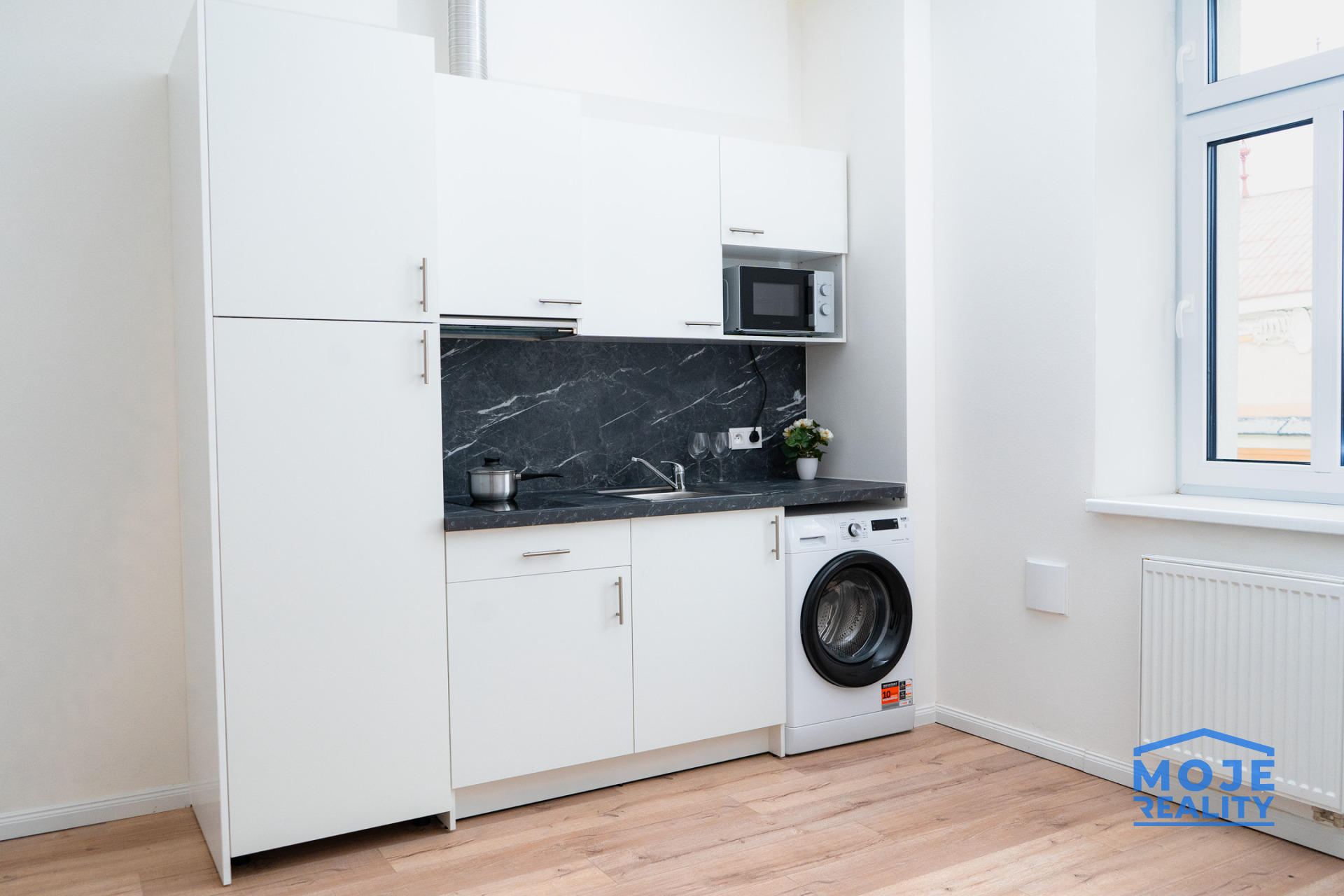 Nabízíme k pronájmu byt o velikosti 2+KK 44,51 m² v centru Plzně. Bytová jednotka se nachází ve 2. patře cihlového domu s výtahem a je po celkové rekonstrukci. Nachází se 2 minuty chůzí od OC Plaza a asi 5 minut od náměstí v ulici Kotkova. Po vstupu do zádveří se po pravé straně nachází koupelna s toaletou, sprchovým koutem, umyvadlem a závěsným topením. Z předsíně můžeme dále vstoupit do kuchyně, která je vybavena kuchyňskou linkou se spotřebiči, tzn. mikrovlnnou troubou, digestoří, varnou deskou, lednicí s mrazákem a pračkou. Z kuchyně dále vstupujeme do prostorného pokoje, který může být po domluvě vybaven za příplatek k nájemnému. Podlahy bytu jsou pokryté vinylem a dlažbou. Teplo v domě je zajištěno vlastním kotlem a teplou vodu zajišťuje el. bojler. Byt se pronajímá vybaven za poplatek 2 500 Kč